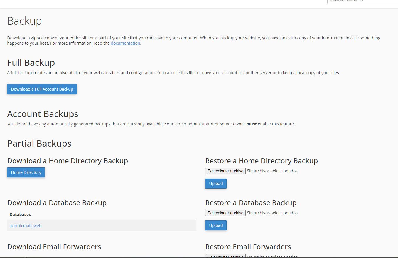 1.- Backup proveido por el proveedor del servicio, cuando contratamos un hosting, hay proveedores, como webempresa o tropicalserver que ofrecen una copia completa de todo el contenedor (Cpanel o similar) los ultimos 15 dias, los ultimos dos meses o incluso más tiempo. Este backup es superpractico en cuanto a agilidad y tranquilildad. Si tenemos un problema, podemos rapidamente ir a ‘ayer’ o buscar un dia en concreto, el 15 de Noviembre, etc y restaurar en menos de 3 minutos de manera limpia y autonoma. Estos backups además, normalmente no computan en espacio de hosting, por la cual cosa son fantasticos.